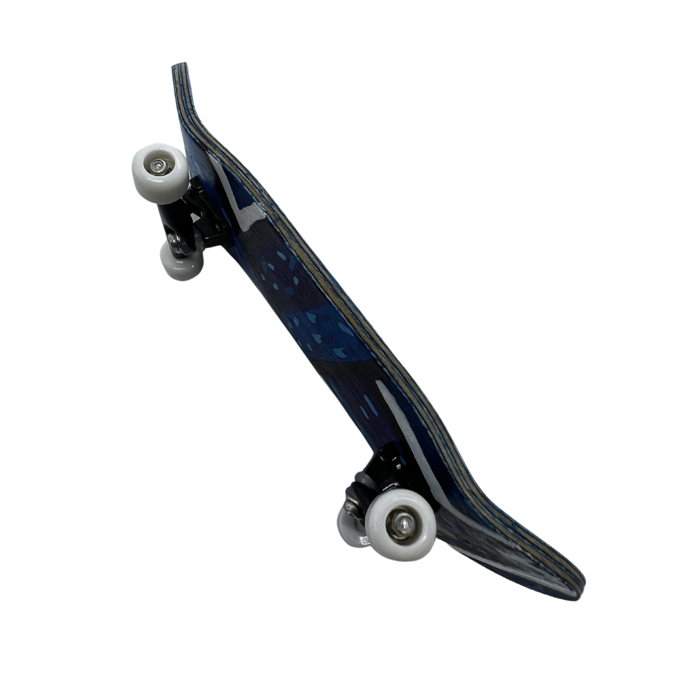 ‘Blue Dragon’ Artist Professional Handmade Fingerboard 34.5mm x 97mm complete with steel trucks and urethane bearing wheels and hand painted original design on deck.