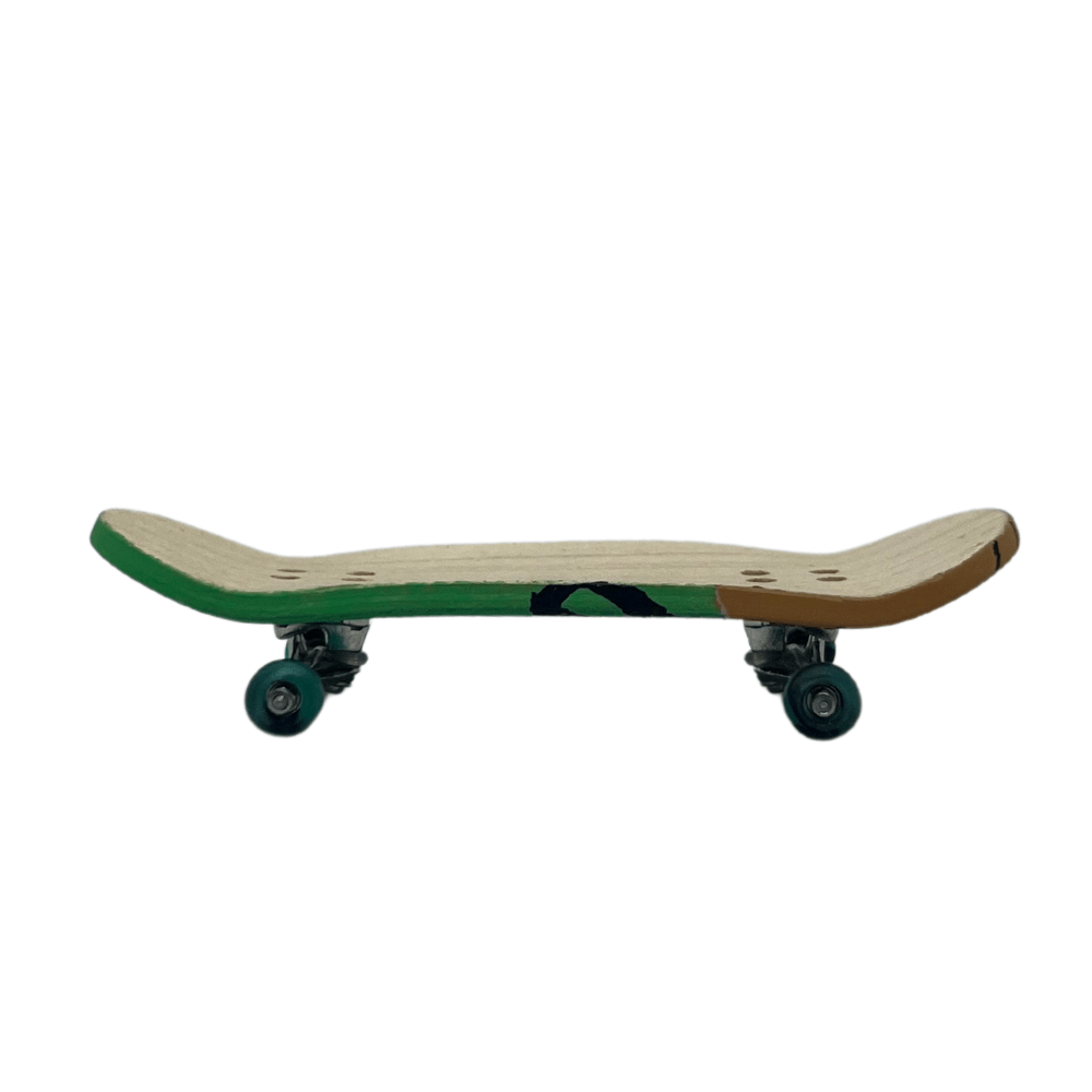 Poke2 artist handmade professional fingerboard 34mm x 98mm complete with steel trucks and bearing wheels hand painted with original art.