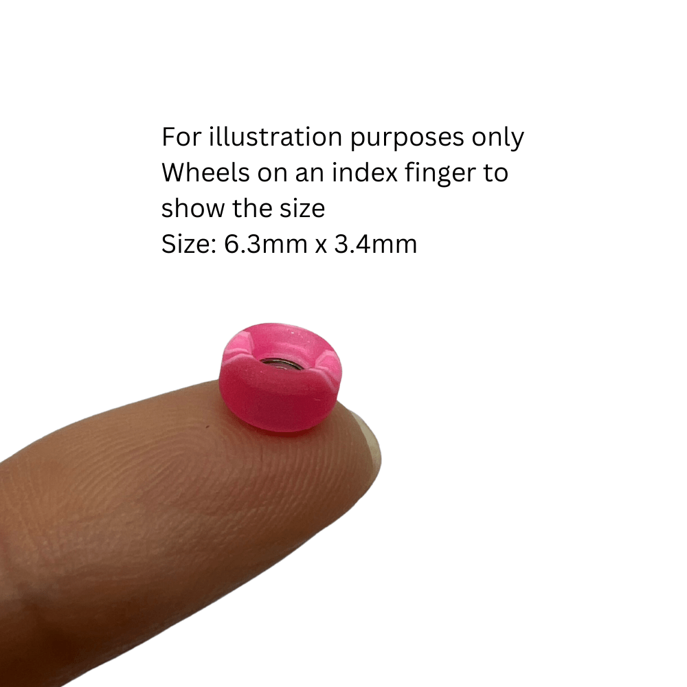 Special limited edition fingerboard swirl urethane bearing wheels pink/white colour measuring 6.3mm x 3.4mm