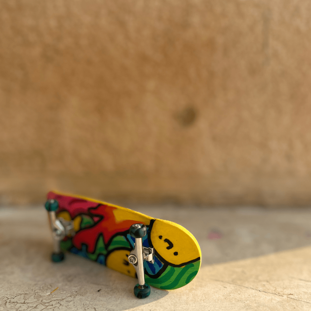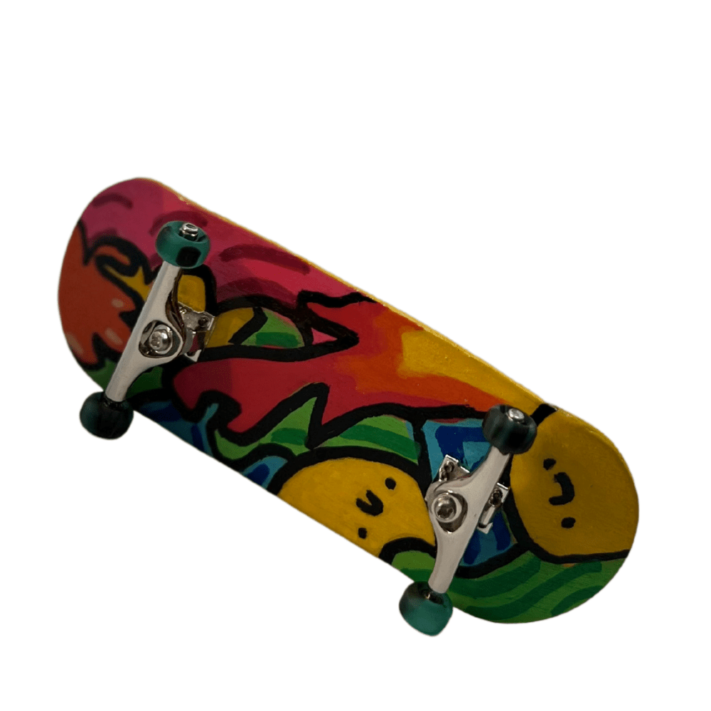 What’s in the box? 1 x Fingerboard complete, 1 x foam grip, 1 x tool, 1 x Artists’ Certificate of Authenticity (and lots of positive vibes)