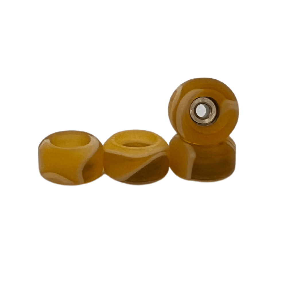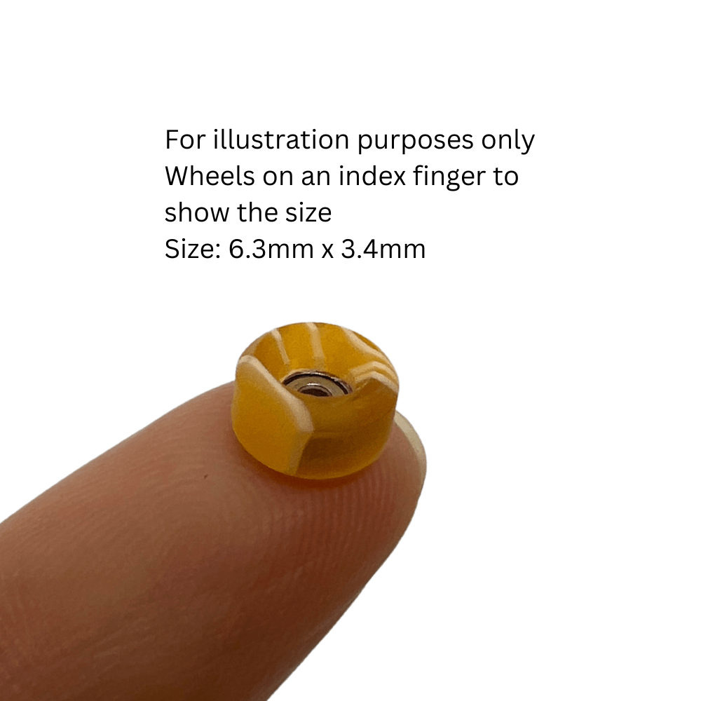 Special limited edition fingerboard swirl urethane bearing wheels yellow/white colour measuring 6.3mm x 3.4mm