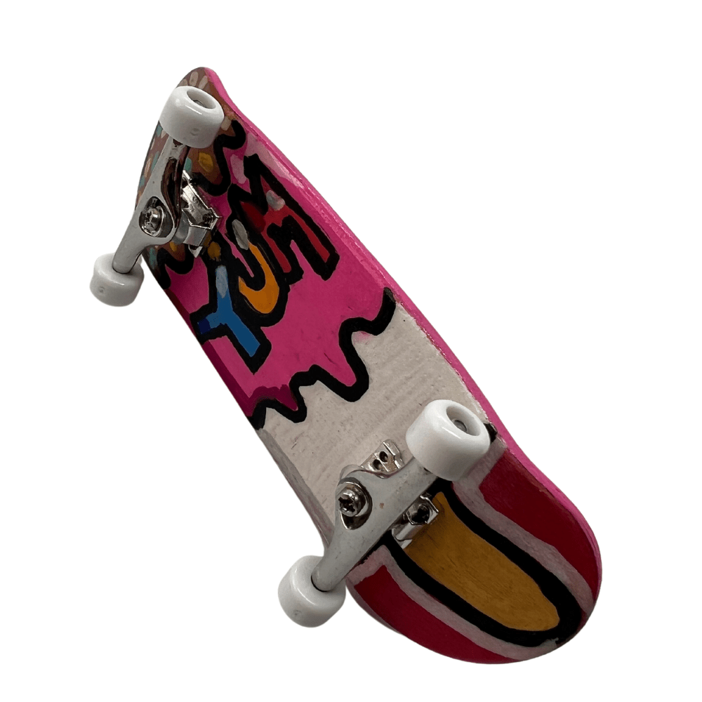 ‘Fruit Lolly’ Artist Professional Handmade Fingerboard 32mm x 96mm complete with steel trucks and urethane bearing wheels and hand painted original design on deck.