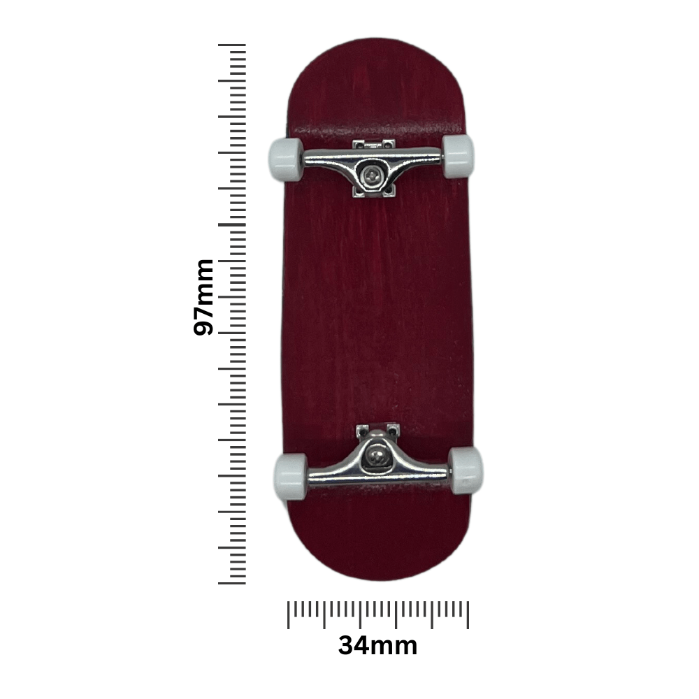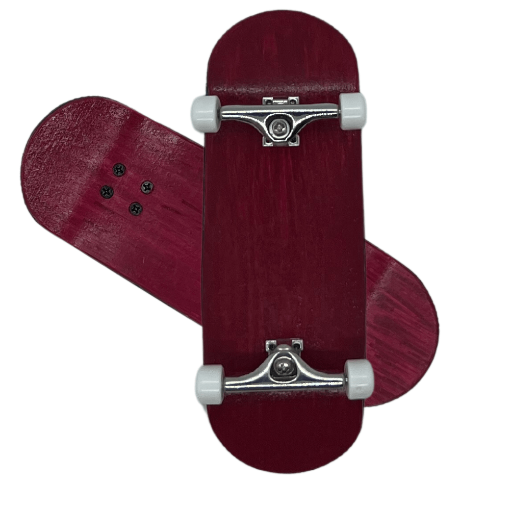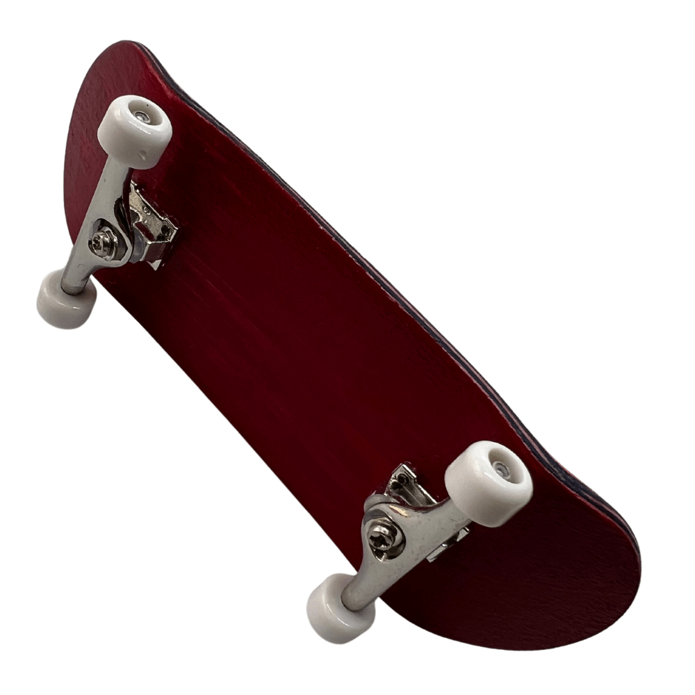 ‘Red’ Artist Professional Handmade Fingerboard 34mm x 97mm complete with steel trucks and urethane bearing wheels and red hand dyed deck.
