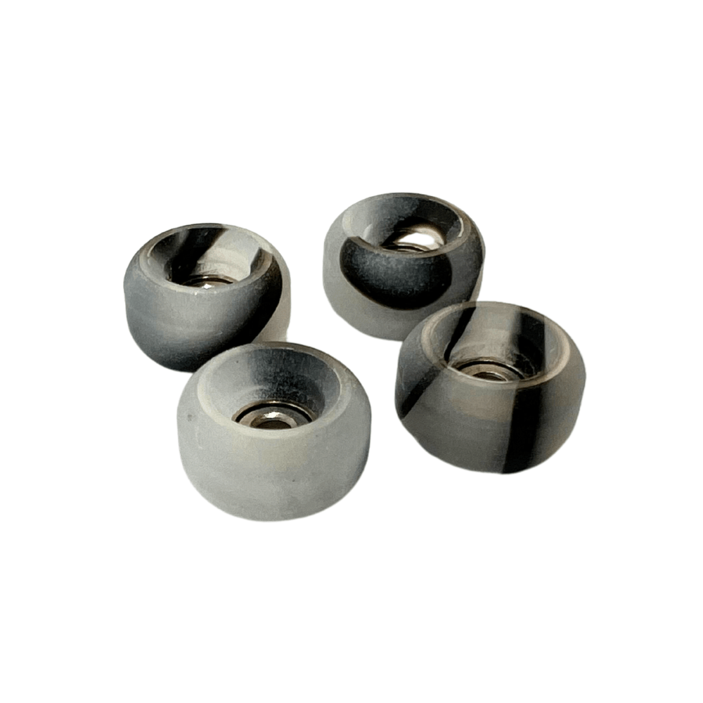 Special limited edition fingerboard swirl urethane bearing wheels Black/White colour measuring 6.3mm x 3.4mm