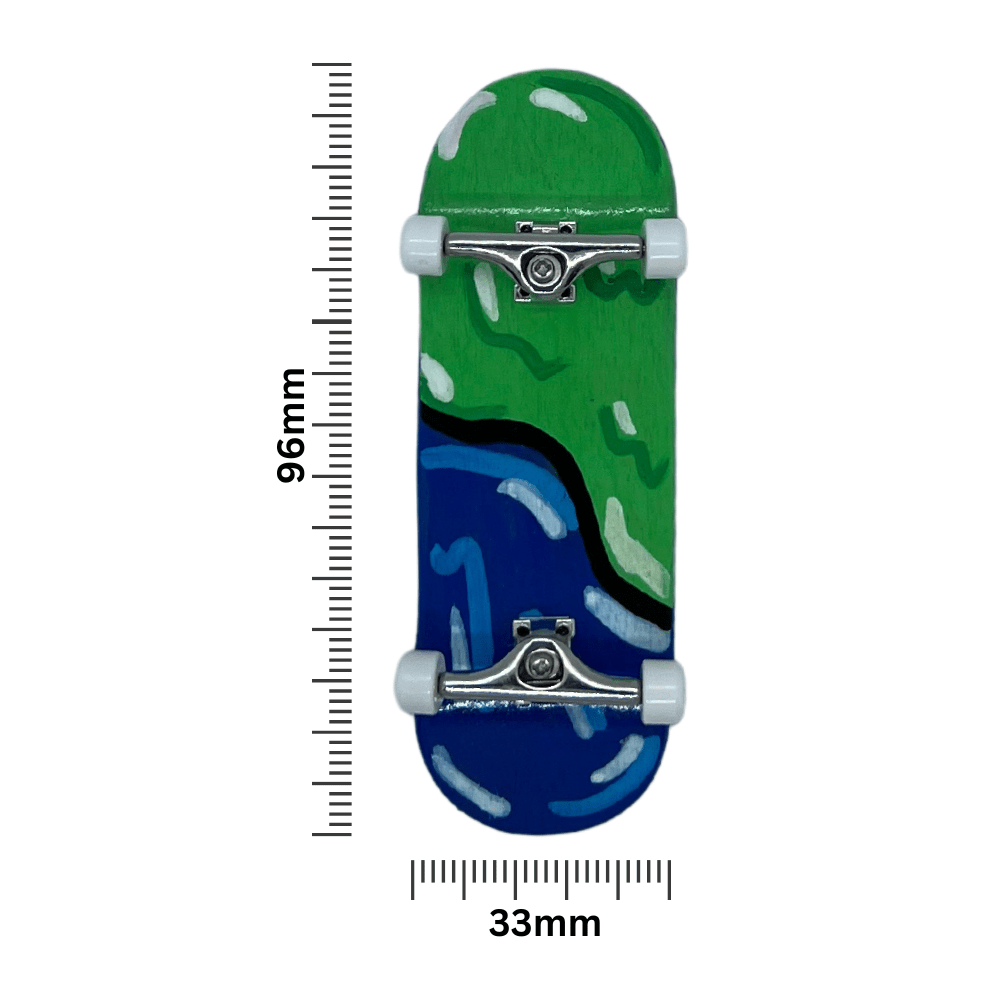What’s in the box? 1 x Fingerboard complete, 1 x foam grip, 1 x tool, 1 x Artists’ Certificate of Authenticity (and lots of positive vibes)