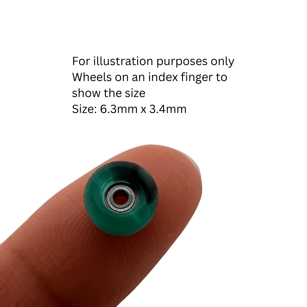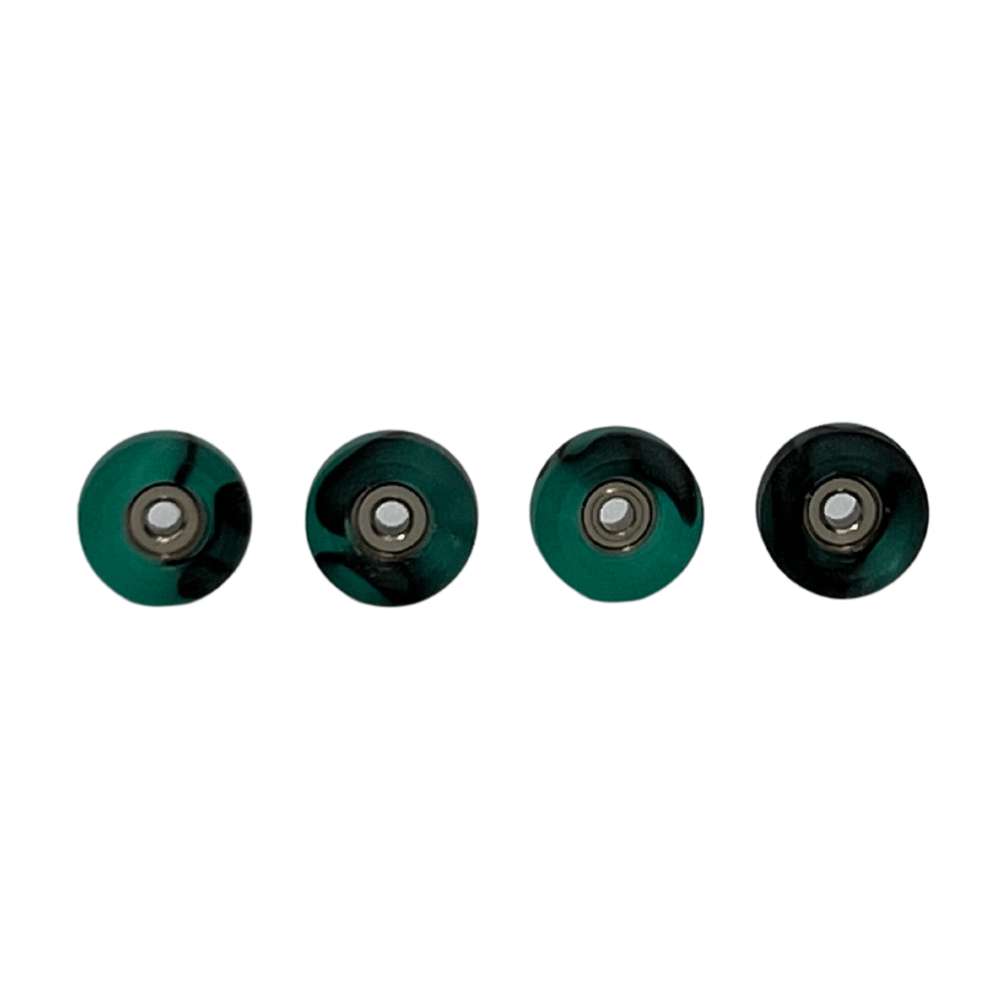 Special limited edition swirl pro fingerboard urethane bearing wheels aquamarine/black colour measuring 6.3mm x 3.4mm