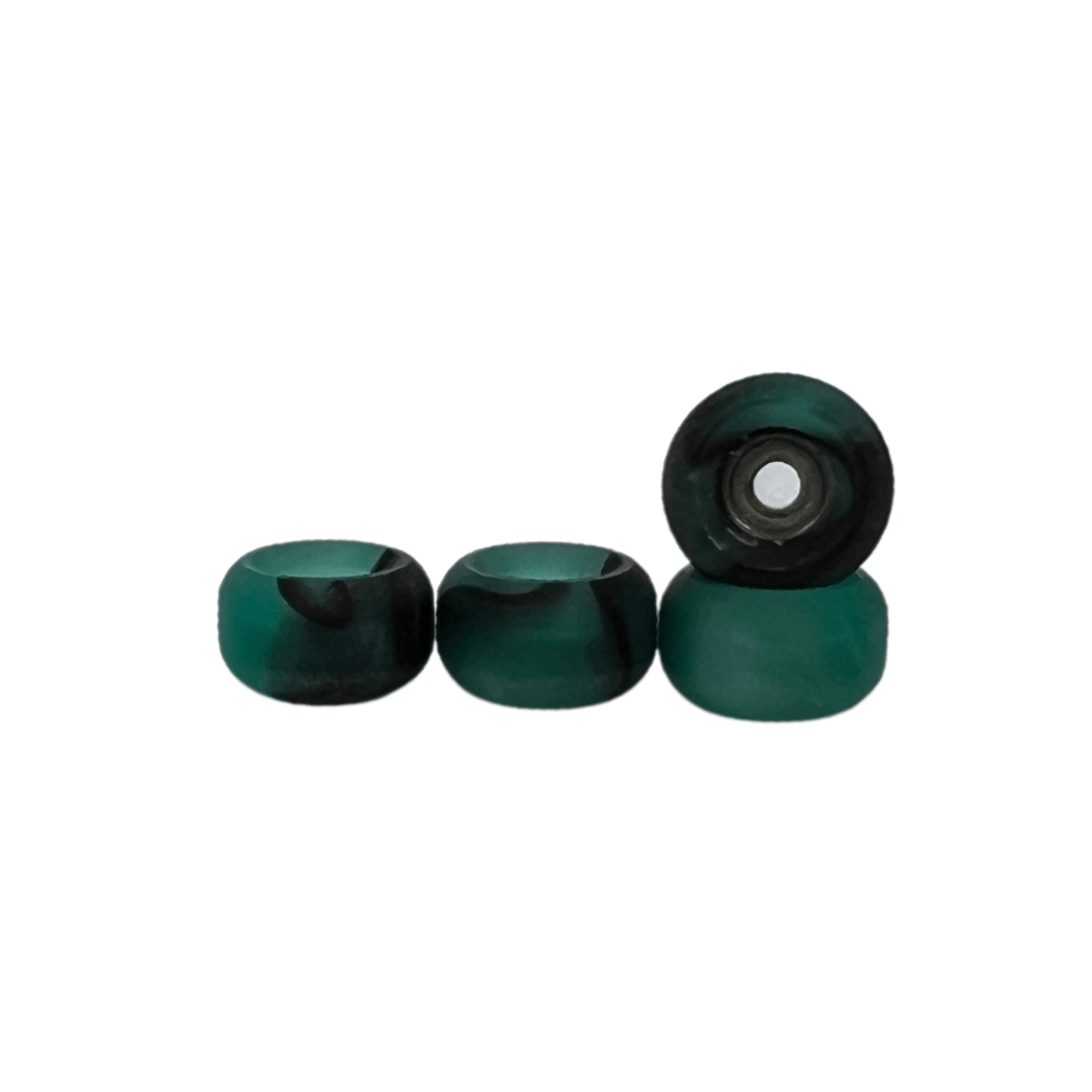 Special limited edition fingerboard swirl urethane bearing wheels aquamarine/black colour measuring 6.3mm x 3.4mm